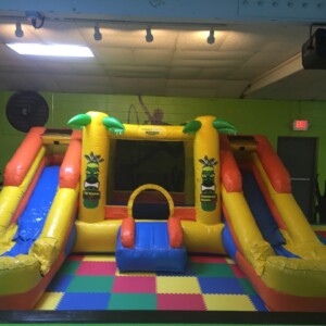Bounce Quest is the ultimate soft impact absorbing indoor multi level playground. You can climb, swing, jump, move through the obstacles, and don’t forget about the slide! Discover something new around the next corner. This area also features a 2 slide inflatable, with a jump area.